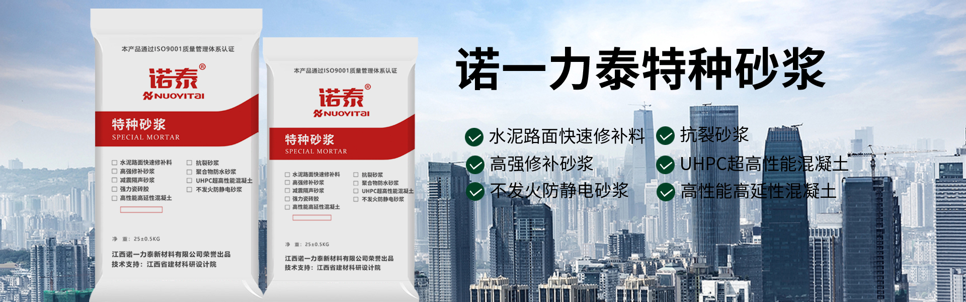 江西諾一力泰新材料有限公司位于江西宜春奉新縣,是專業從事灌漿料、水泥路面修補砂漿抗裂砂漿、防水砂漿、保溫砂漿、隔聲砂漿、粘結砂漿等砂漿系列產品生產銷售的廠家。